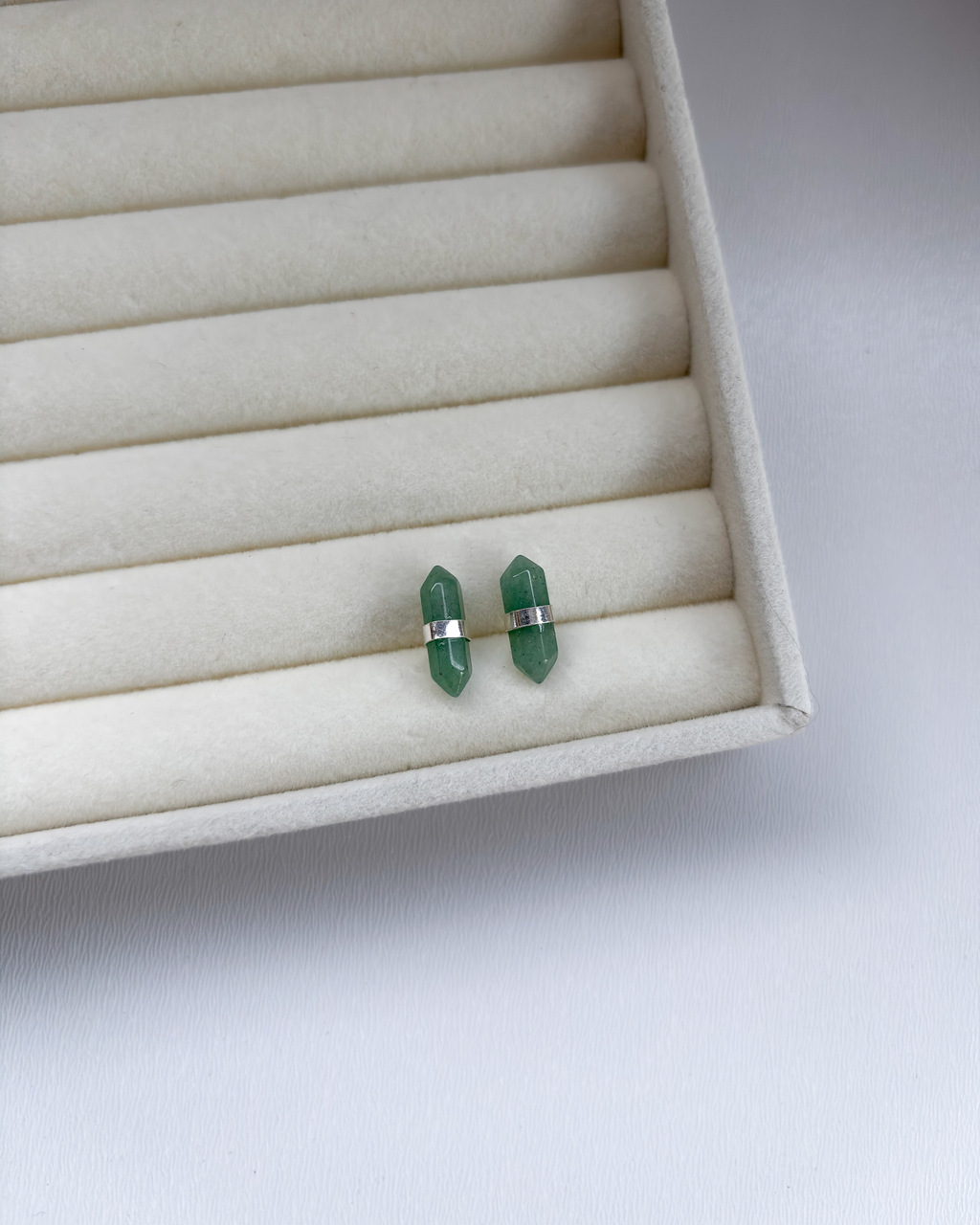Conectando cura e esperança, o brinco Íris com quartzo verde biponta em prata 925 é uma ode à regeneração. A deusa Íris, que atravessa os reinos levando mensagens divinas, inspira esta peça como símbolo de equilíbrio e renovação.
