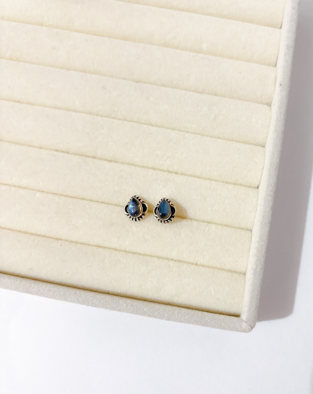 Um talismã em forma de joia. O Brinco Labradorita Gota em Prata 925 Envelhecida une o charme atemporal da prata com o brilho místico da labradorita, pedra conhecida por sua energia de proteção e conexão espiritual.