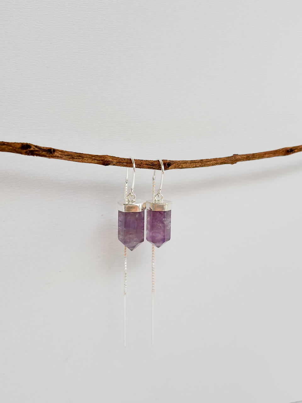 Inspirado na deusa lunar Selene, divindade grega que personifica a própria Lua em sua plenitude, o brinco Selene evoca mistério, beleza e um encantamento suave. Com seu design etéreo — uma corrente veneziana delicada em prata 925 e uma ponta de ametista natural lapidada — essa peça flutua junto ao movimento do corpo como um sopro de luz noturna.