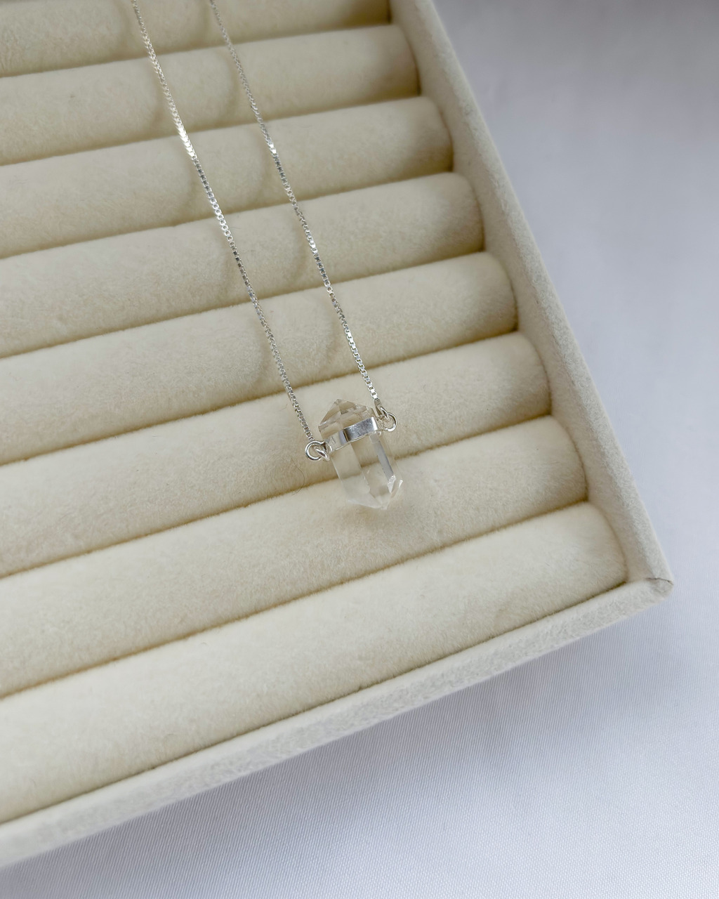 No colar Afrodite, o quartzo cristal age como um amplificador de intenções. Representando a pureza da deusa, essa pedra potencializa a energia amorosa, purifica o campo áurico e fortalece a conexão espiritual. Ideal para quem busca clareza nas relações e expansão do amor em níveis mais sutis.