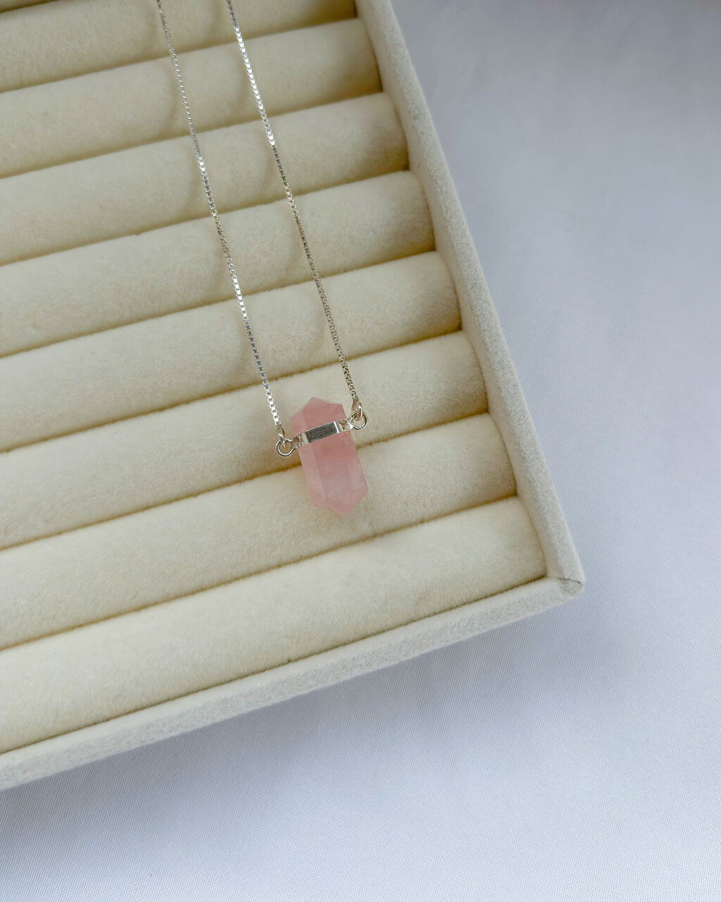 O colar choker Afrodite com Quartzo Rosa vibra a frequência do amor incondicional. Essa pedra, símbolo da doçura emocional, conecta Afrodite à ternura e ao autocuidado. Ideal para quem deseja fortalecer vínculos afetivos, atrair conexões genuínas e cultivar o amor-próprio em sua forma mais pura.